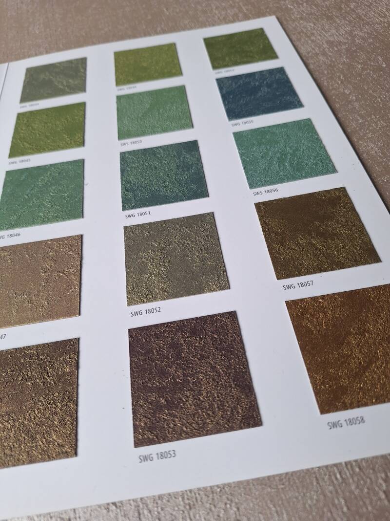 Swahili is een decoratieve coating voor binnen gemaakt van metalen ladingen en geselecteerde kwartsaggregaten die hoogwaardige visuele effecten produceren en een uniek spel van licht en tinten creëren.